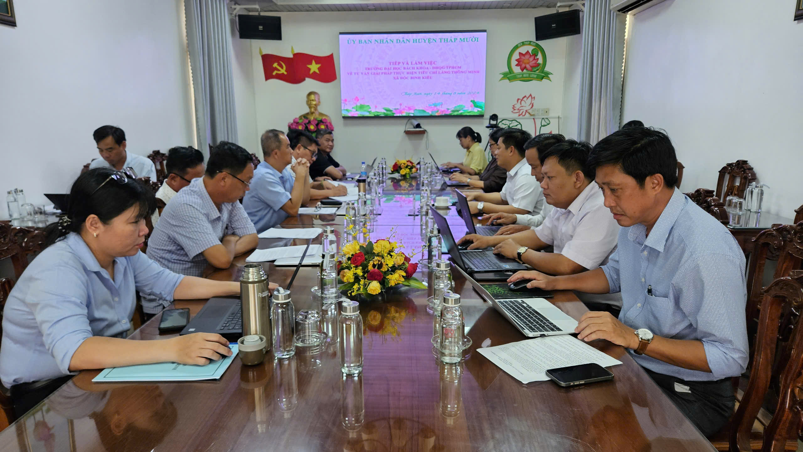 Qua trao đổi, Chủ tịch UBND huyện Đoàn Thanh Bình đề nghị các ngành phối hợp với Trường ĐH Bách Khoa khẩn trương triển khai thực hiện từng tiêu chí, khi hoàn chỉnh và đưa vào vận hành làng thông minh phải đảm bảo có sự tương tác giữa cộng đồng người dân với chính quyền địa phương, người dân phải tham gia hiệu quả và có sự kết nối, chia sẽ thông tin, góp ý, phản ánh của người dân trên các ứng dụng của làng thông minh. Lãnh đạo huyện đề nghị Trường hỗ trợ địa phương hoàn thành các công trình phần việc trong giữa tháng 10.